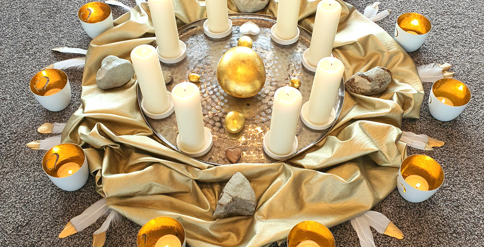 Am Abend gab es zwei tief bewegende Rituale. In einem Feuerschalen-Ritual übergaben wir die Dinge dem Feuer, die in unserem Leben ausgedient haben. Im vedischen Agnihotra Feuerritual - pünktlich zum Sonnenuntergang - um die Energien zu bündeln und zu verstärken. Begleitet wurden die Rituale von Germaid Charlotte und ihren wunderbaren Gesängen.